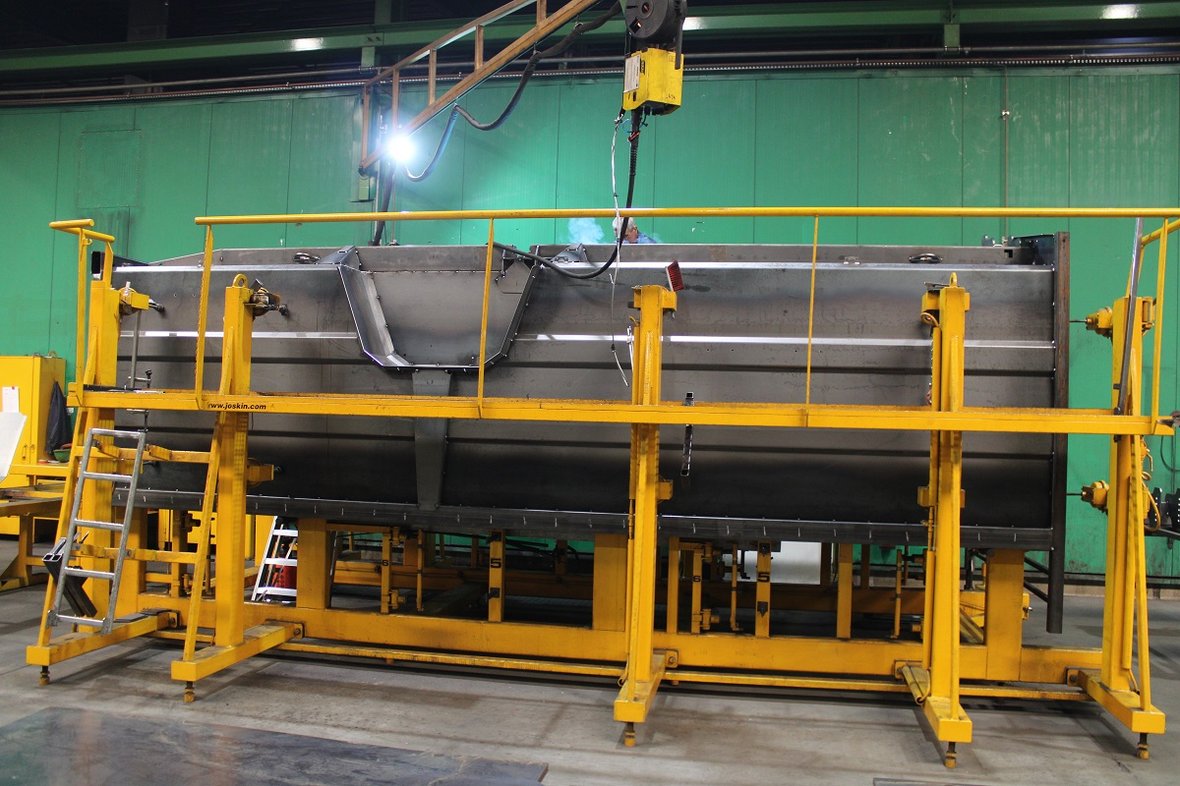W dziale gięcia i spawalnictwa uczestnicy obserwowali pracę robotów spawalniczych, które obsługiwały zarówno małe elementy, jak i ciężkie skrzynie przyczep. Roboty były wyposażone w systemy bezpieczeństwa i nadzorowane przez operatorów. Pierwsza stacja obsługi składała się z trzech osób oraz kamery rejestrującej pracę robotów. Winda zaprowadziła gości na piętro, gdzie również znajdowały się roboty spawalnicze i stanowiska obsługi.