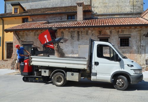 Kompaktowe wozidło Hinowa z wysokim wyładunkiem i napędem gąsienicowym
