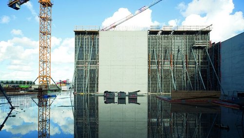 Deskowania firmy NOE sprawdzają się w wielu wymagających projektach, będących nieraz dużym wyzwaniem zarówno dla sprzętu, jak i ekip budowlanych, o czym przekonują zrealizowane przy ich pomocy liczne obiekty. Jednym z nich jest potężna stacja uzdatniania wody ze zbiornikiem na ścieki o pojemności 300 m³ w holenderskim mieście Westfort koło Utrechtu, gdzie ani znaczna powierzchnia deskowania, ani duża kubatura szalunków czy wreszcie ogromny nacisk mieszanki betonowej nie stanowiły żadnej przeszkody dla zastosowania systemu NOEtop.